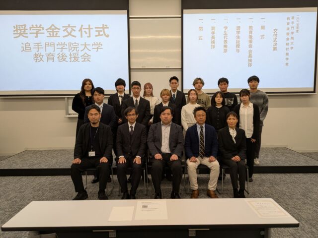 11月12日(水)13時より、追手門学院大学茨木総持寺キャンパスアカデミックベースBSC410教室にて、2025年度教育後援会給付奨学金交付式を執り行いました。