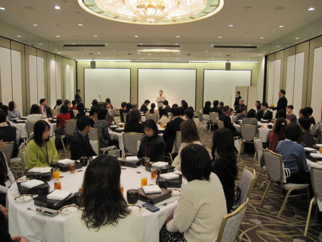 会では、教育後援会の丸岡会長、続いて追手門学院大学の真銅学長よりご挨拶をいただきました。会員の皆様同士、あるいは大学関係者と、お子様の大学生活や近況について親睦を深める貴重な機会となりました。最後に教育後援会の伊藤副会長より閉会のご挨拶を述べ、盛況のうちに食事会を終了いたしました。