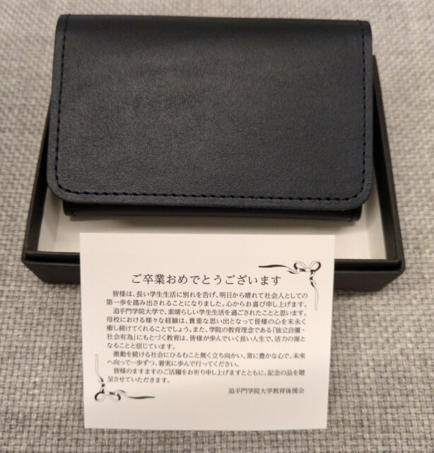 教育後援会からは、卒業記念品として「名刺入れ」が丸岡会長より贈呈されました。
